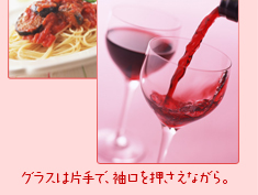 テーブルの物を取る時、袖でグラスを倒したりしがちです。片方の手で袖口を押さえましょう。